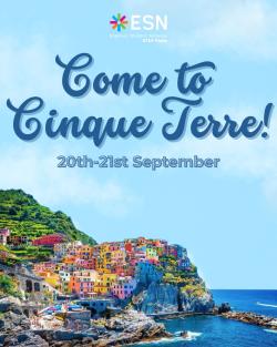 We're super excited to announce our first trip of the semester to the world-famous Cinque Terre! This is the perfect chance to meet new people, make friends, and start your Erasmus adventure in style!